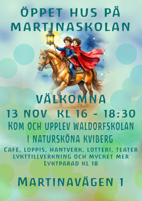 Torsdagen den 13/11 är det dags för öppet hus på Martinaskolan. Bjud in vänner, nära och kära så ses vi där! :)